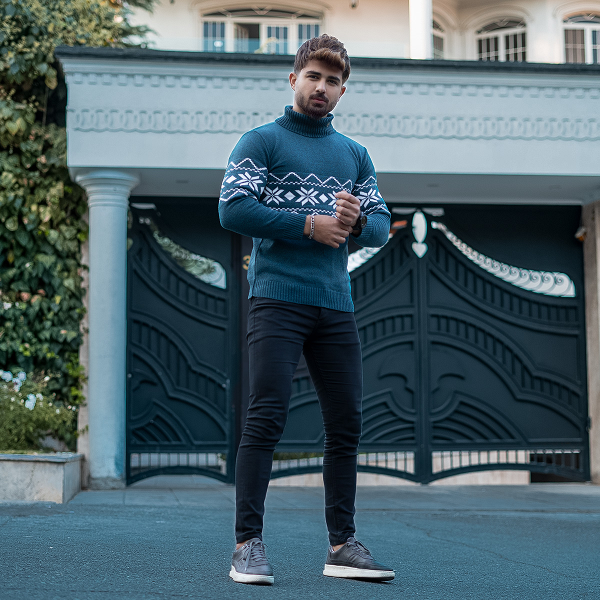 یقه اسکی مردانه کله غازی حاشیه سفید مدل Arja